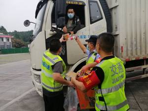 在綿陽(yáng)南服務(wù)區(qū),黨員志愿者積極為駕乘人員提供食品、飲水,耐心宣傳疫情防控知識(shí),溫馨提醒駕乘人員做好佩戴口罩,亮碼掃碼,測(cè)量體溫,保持一米線(xiàn)等防護(hù)措施。