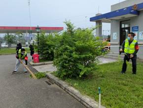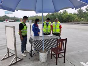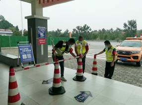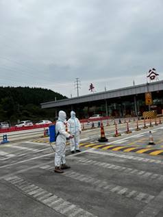 在收費(fèi)站,黨員志愿者積極主動(dòng)配合屬地政府開(kāi)展疫情防控工作,不間斷開(kāi)展場(chǎng)所消殺,疏導(dǎo)出站車(chē)輛,疏散滯留人員,清掃環(huán)境衛(wèi)生。